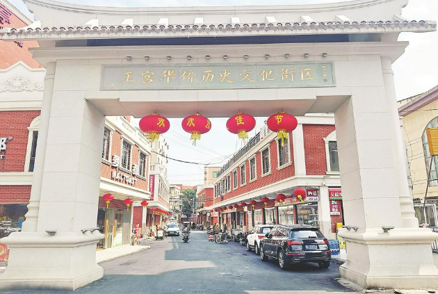 鲤城著名侨领、王宫社区乡贤陈守仁博士题字的“王宫华侨历史文化街区”牌坊(鲤城区江南街道办事处供图)