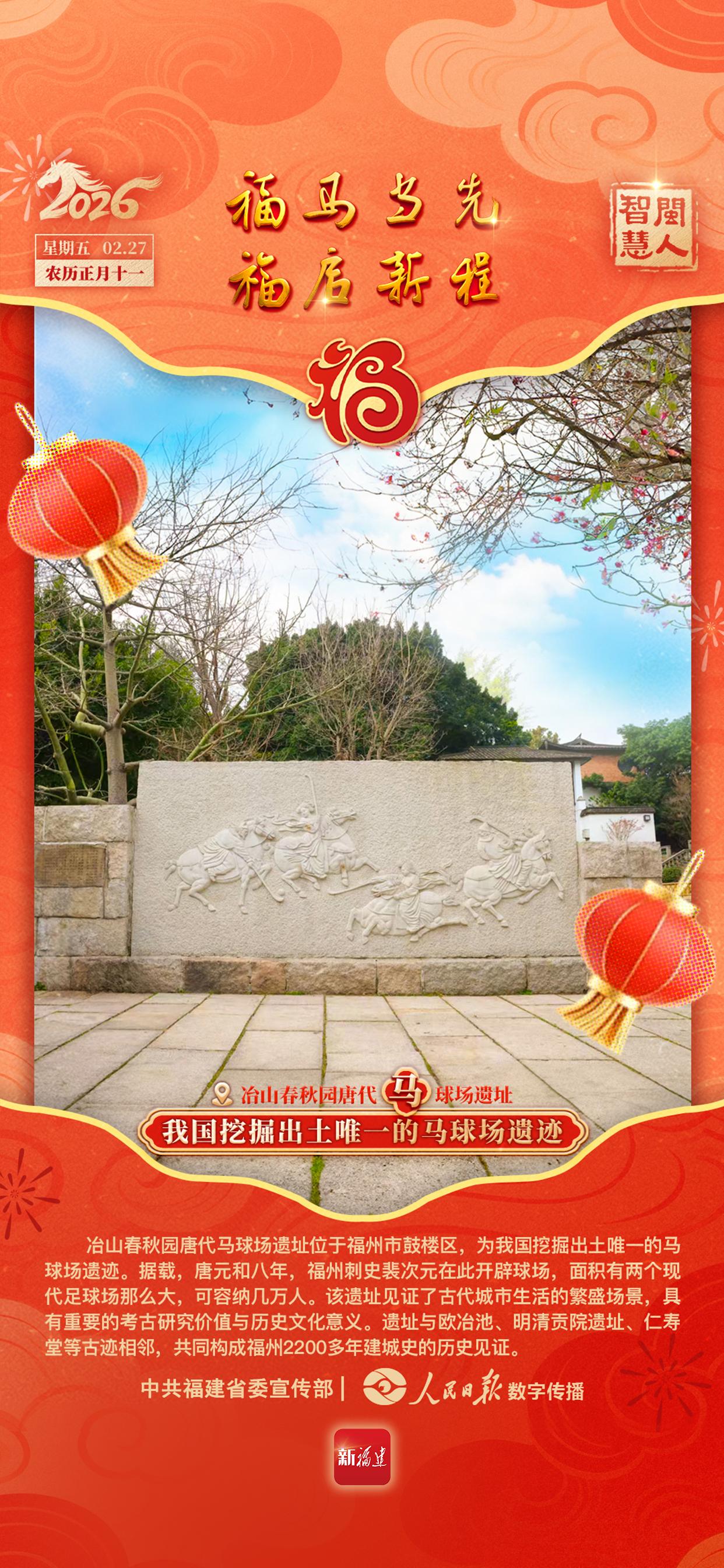 冶山春秋园唐代马球场遗址位于福州市鼓楼区,为我国挖掘出土唯一的马球场遗迹。据载,唐元和八年,福州刺史裴次元在此开辟球场,面积有两个现代足球场那么大,可容纳几万人。该遗址见证了古代城市生活的繁盛场景,具有重要的考古研究价值与历史文化意义。遗址与欧冶池、明清贡院遗址、仁寿堂等古迹相邻,共同构成福州2200多年建城史的历史见证。