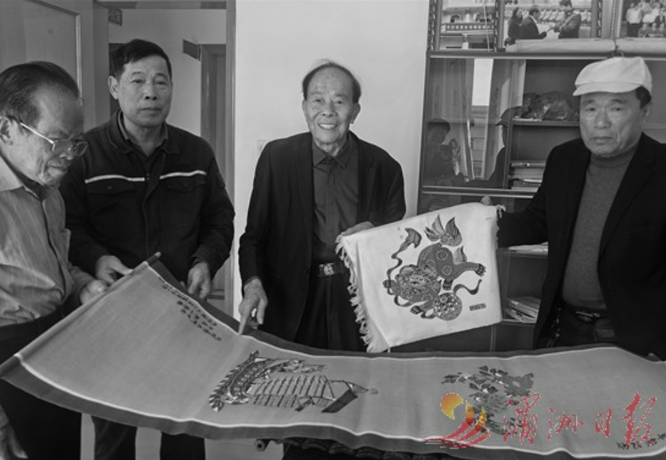 在东海镇金沙宫,76岁的金沙宫副董事长蔡红苗对琉球狮子印象深刻。他与同事找到了琉球蔡氏宗亲首次认祖归宗时交换的“信物”——一块印有“琉球红型”字样的麻布印花狮子,图案为狮子戏球,形态可爱。