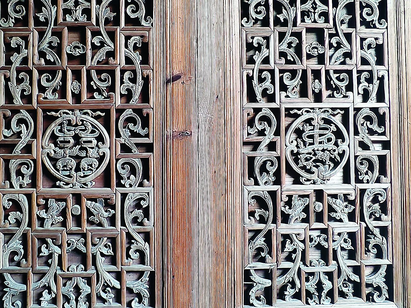 内衙位于大衙内侧,为清道光举人应銮阶所建,是三大土库中木雕艺术最高的建筑。应銮阶为官爱民,内衙土库敞亮轩昂,雕梁画栋。厢房隔扇门上,雕刻着“八仙过海”“白蛇传”“三娘教子”等故事,木雕栩栩如生。窗户上龙凤纹“福禄寿喜”雕件,以龙凤为轮廓组合四字,构思精巧,堪称一绝。宅内大象、蝙蝠等吉祥木雕,尽显中式吉祥文化精髓。