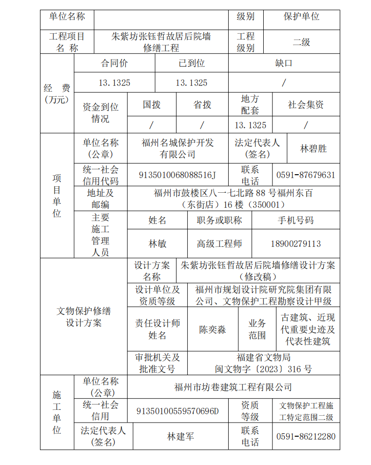 闽文物工程〔2025〕43号朱紫坊张钰哲故居后院墙修缮工程