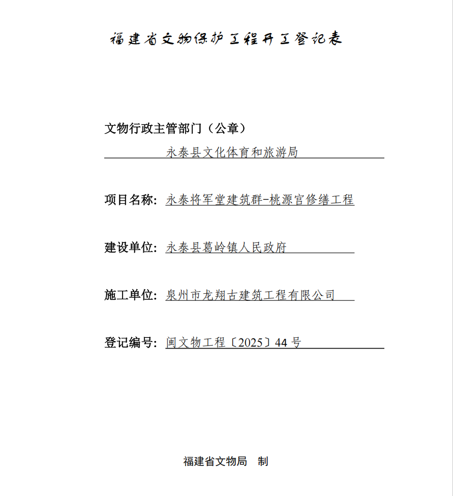 闽文物工程〔2025〕44号永泰将军堂建筑群-桃源宫修缮工程