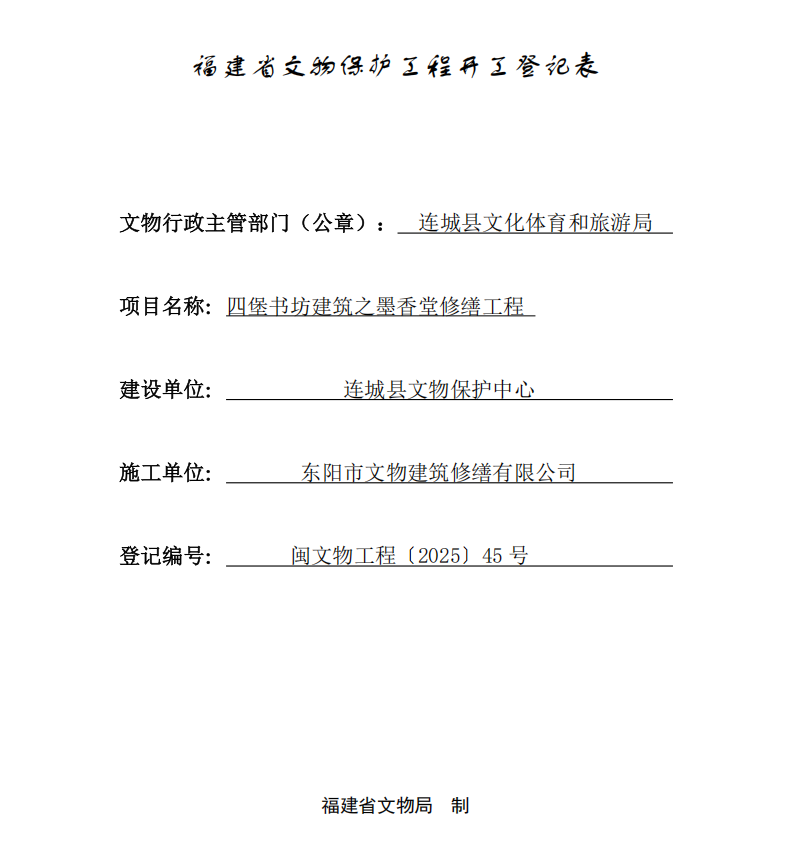 闽文物工程〔2025〕45号四堡书坊建筑之墨香堂修缮工程