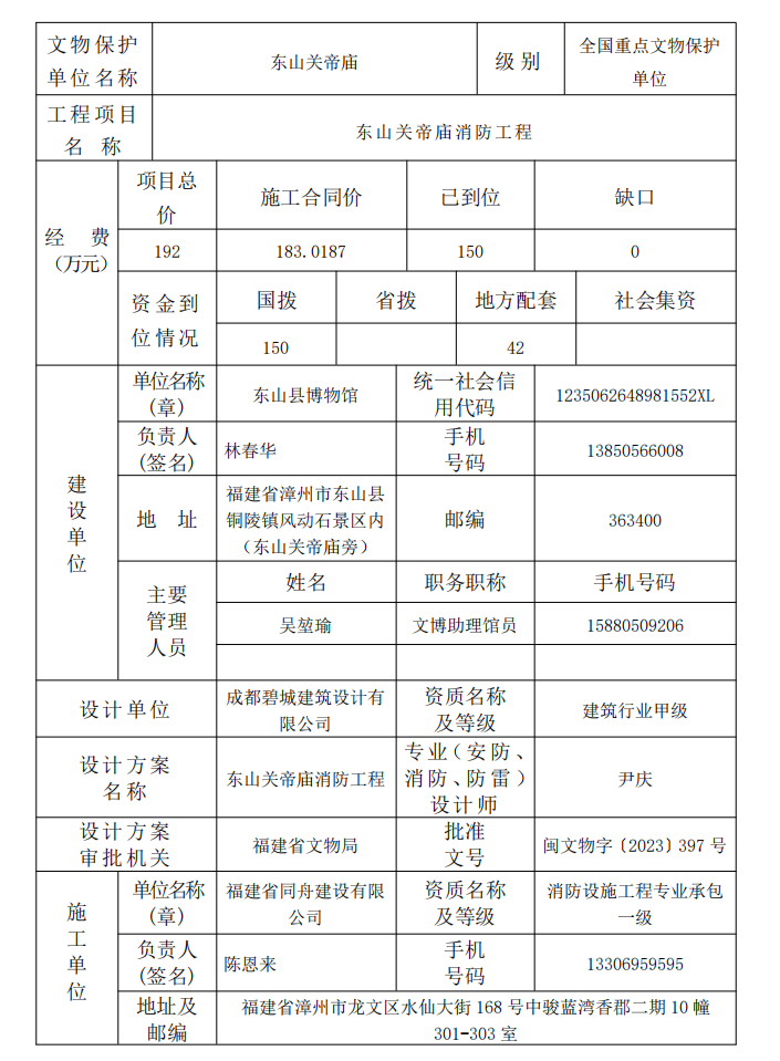 闽文物安全防护工程〔2025〕25号东山关帝庙消防工程