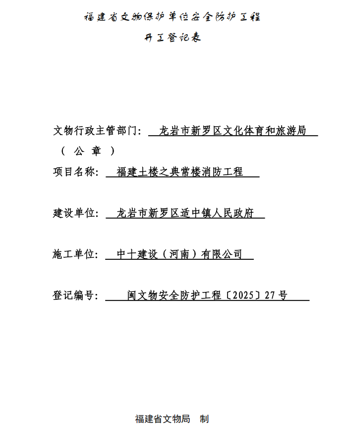 闽文物安全防护工程〔2025〕27号福建土楼之典常楼消防工程