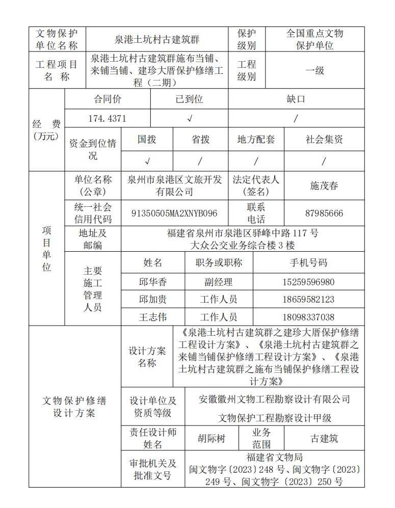 闽文物工程〔2025〕51号泉港土坑村古建筑群施布当铺、来铺当铺、建珍大厝修缮项目(二期)