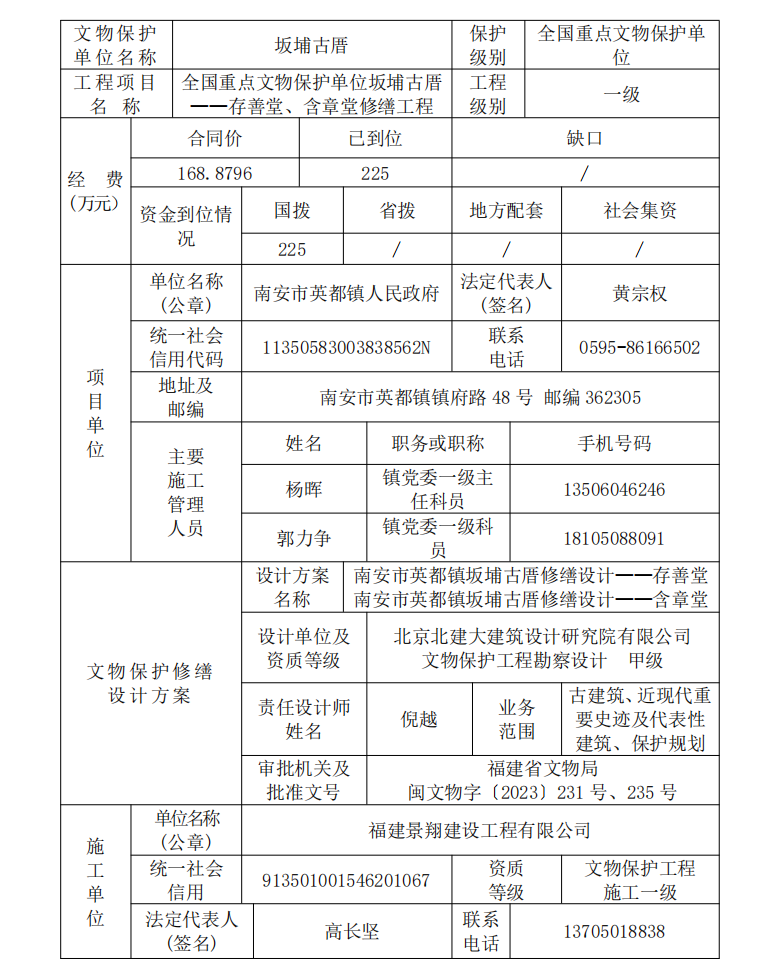 闽文物工程〔2025〕54号全国重点文物保护单位坂埔古厝——存善堂、含章堂修缮工程