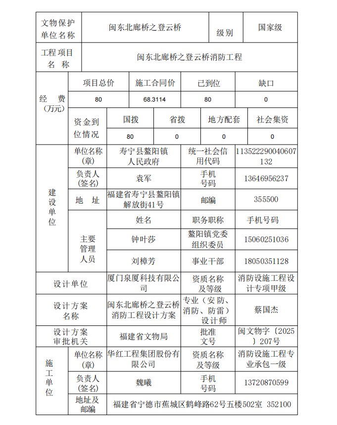 闽文物安全防护工程〔2026〕2号闽东北廊桥之登云桥消防工程