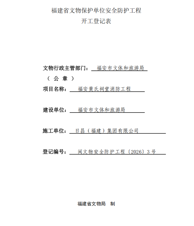 闽文物安全防护工程〔2026〕3号福安黄氏祠堂消防工程
