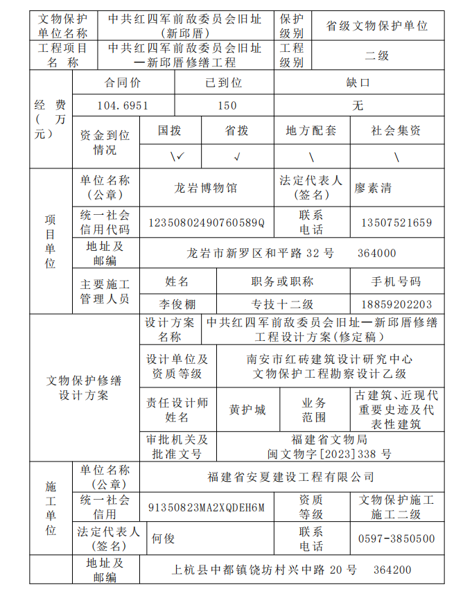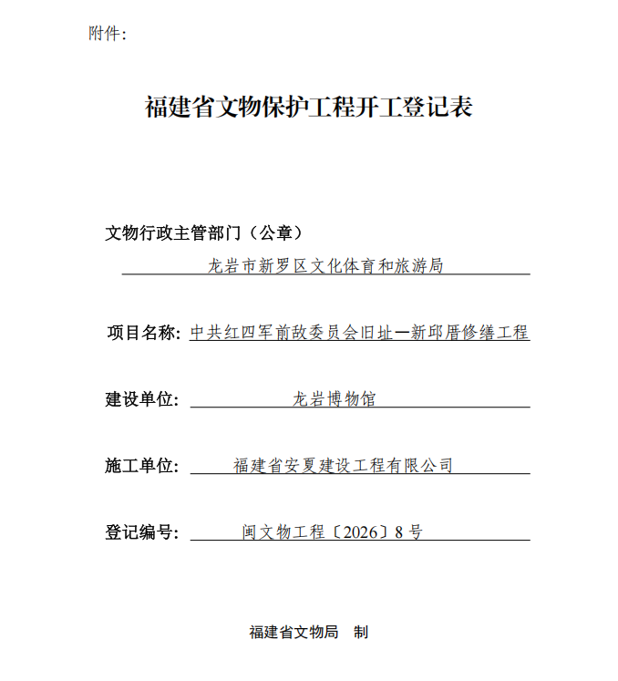闽文物工程〔2026〕8号中共红四军前敌委员会旧址—新邱厝修缮工程