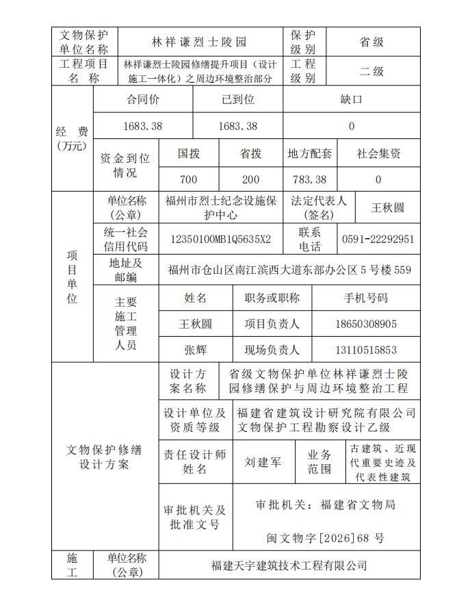 闽文物工程〔2026〕9号林祥谦烈士陵园修缮提升项目(设计施工一体化)之周边环境整治部分